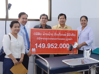 MMG LXML Sepon representatives (first two from left) handed over medical equipment to improve child and maternal healthcare in Sikhottabong District Hospital in Vientiane Capital.